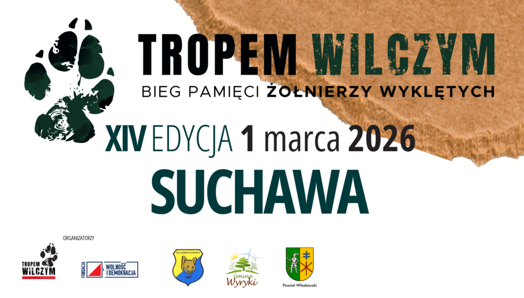 Już 1 marca 2026 roku mieszkańcy Powiatu Włodawskiego po raz kolejny staną na starcie ogólnopolskiego wydarzenia „Tropem Wilczym. Bieg Pamięci Żołnierzy Wyklętych”. Zapraszamy wszystkich mieszkańców do Suchawy (gmina Wyryki), by w sportowy sposób oddać hołd żołnierzom polskiego podziemia antykomunistycznego.
